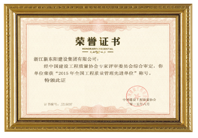 2015年全國工程質(zhì)量管理先進單位